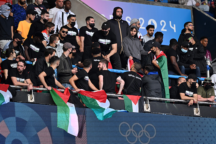 Fransa Olimpiyat ve Paralimpik Oyunları Organizasyon Komitesi (COJOP), maç sırasında ellerinde Filistin bayrakları taşıyan ve "Soykırım Olimpiyatları" yazılı pankart açarak İsrail'i protesto eden taraftarlar hakkında "Yahudi karşıtı" eylemde bulundukları gerekçesiyle şikayette bulundu.