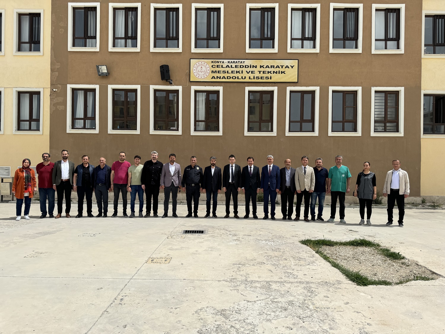 Karatay Belediye Başkanı Hasan Kılca ve Karatay İlçe Kaymakamı Cengiz Ayhan; ilçe mülki erkanı ile Karatay Belediyesi Meclis Üyeleriyle birlikte Celaleddin Karatay Mesleki ve Teknik Anadolu Lisesi ve Karatay Hamza Yerlikaya Spor Lisesi’ni ziyaret etti.