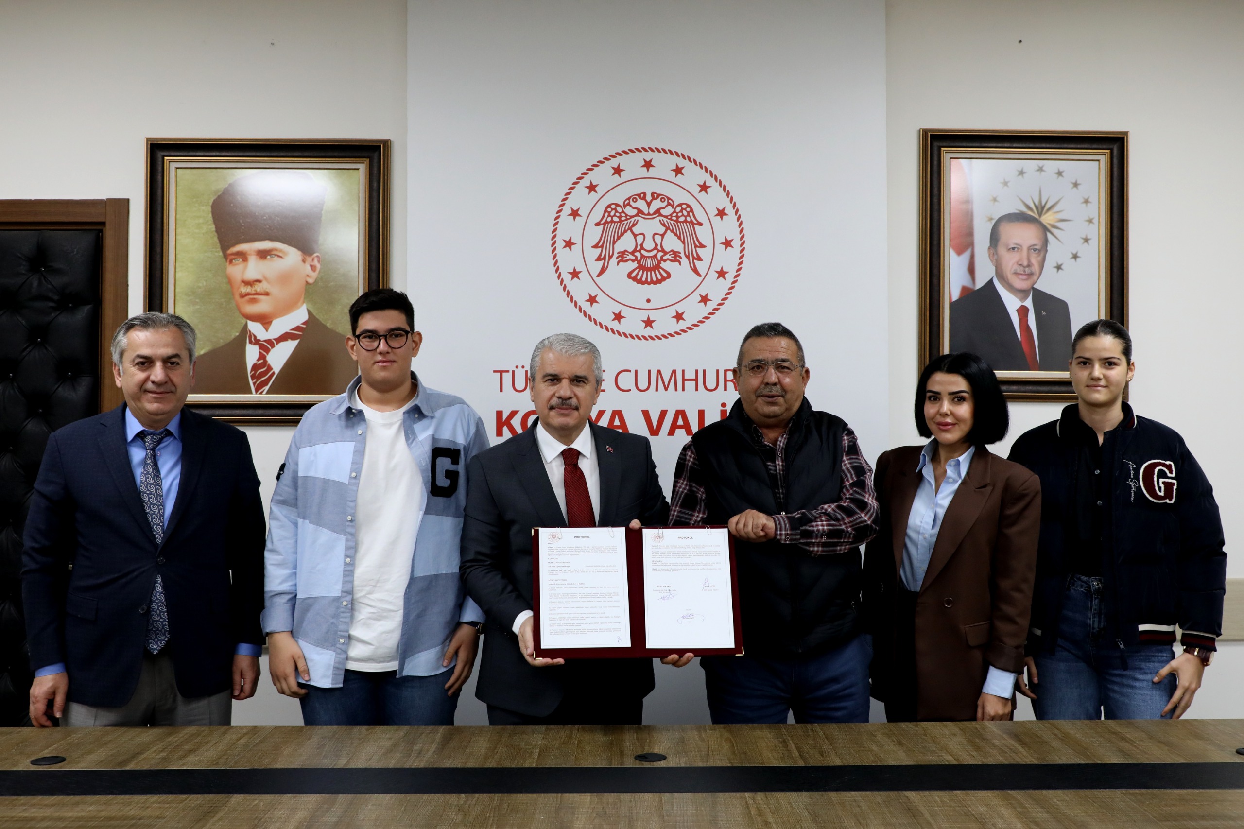 Konya Valiliği toplantı salonunda düzenlenen protokol imza törenine; Konya Valisi İbrahim Akın, Konya İl Milli Eğitim Müdürü Murat Yiğit, hayırsever Haydar Kocaer, Konya İl Milli Eğitim Müdür Yardımcısı Mustafa Yılmaz, Çumra İlçe Milli Eğitim Müdürü Mehmet Altunyaldız, hayırsever Kocaer’in kızı ve torunları katıldı.