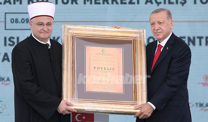 Hırvatistan Sisak'taki İslam Kültür Merkezi'nin açılışında, Cumhurbaşkanı Erdoğan'a Hırvatistan İslam Birliği Kurucu Onur Ödülü verildi.