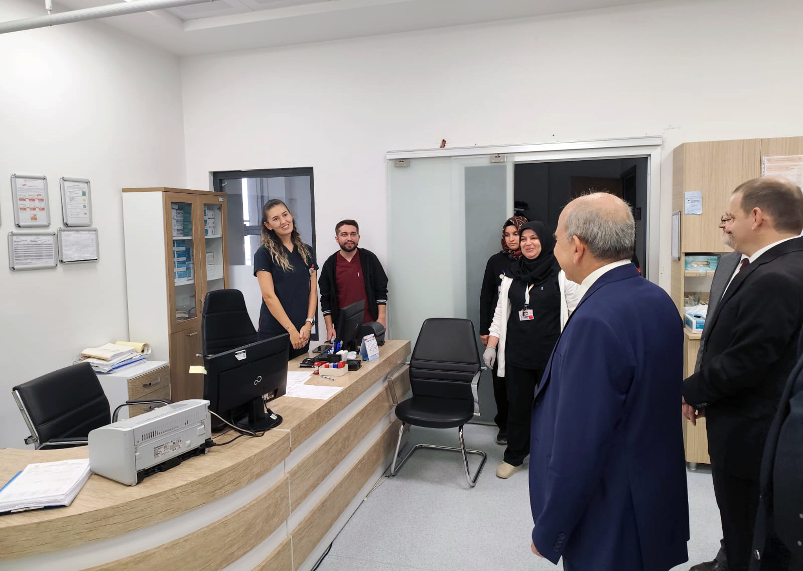 merkezinde görev başında olan sağlık çalışanlarını ziyaret ederek fikir alışverişinde bulunan