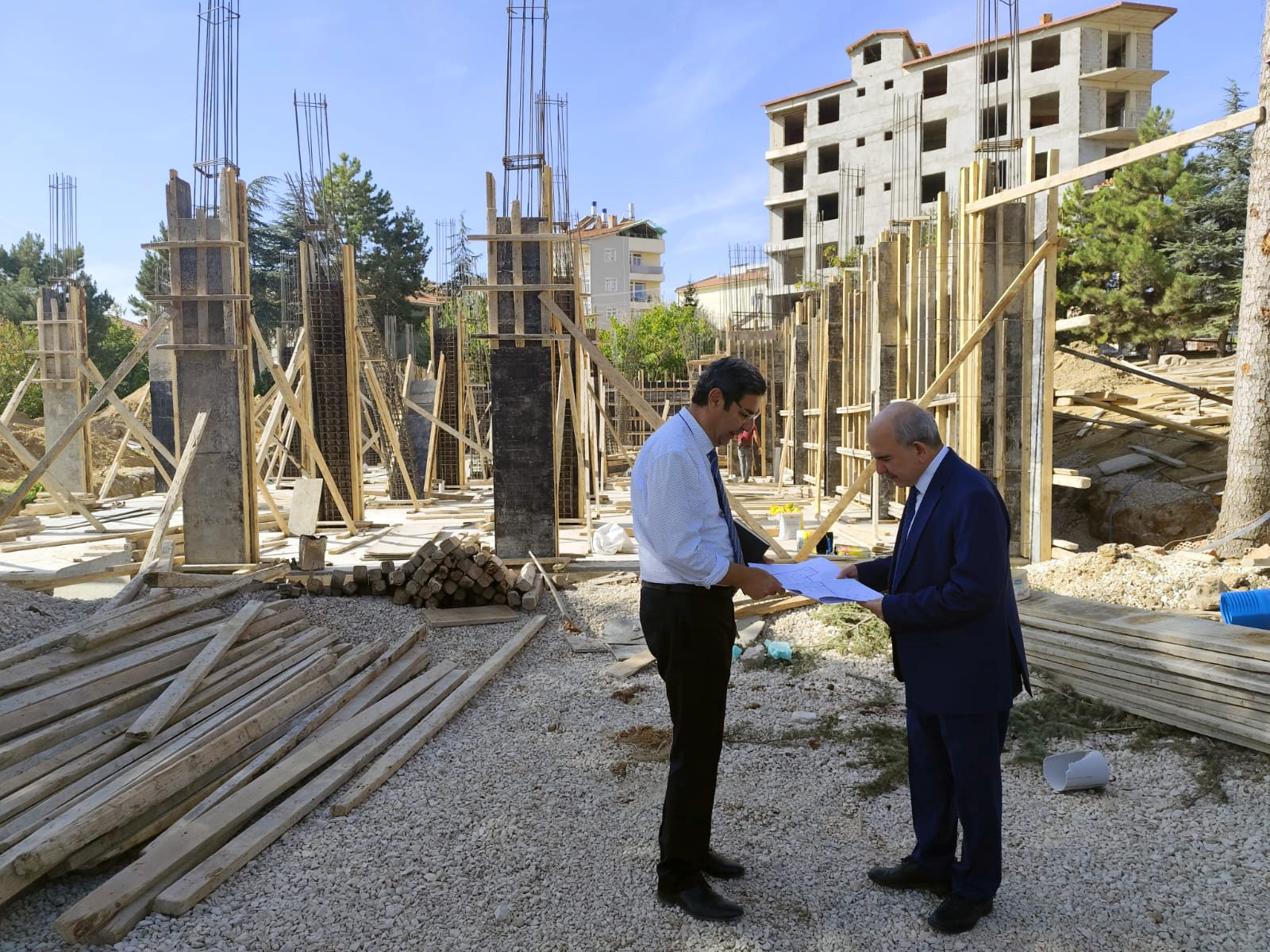 da yerinde görerek incelemelerde bulunan Prof. Dr. Koç, inşaatın hızlı bir şekilde ilerlediğini