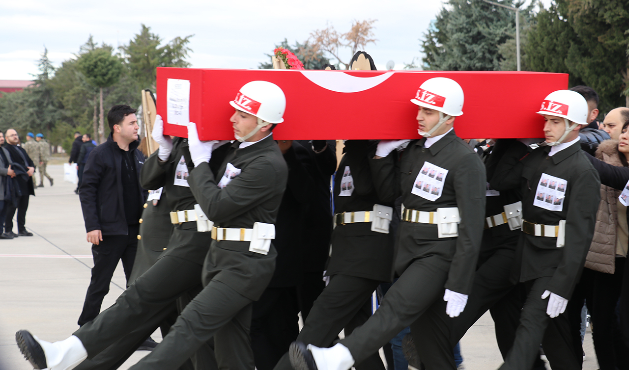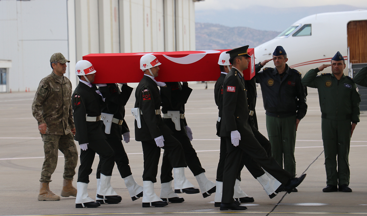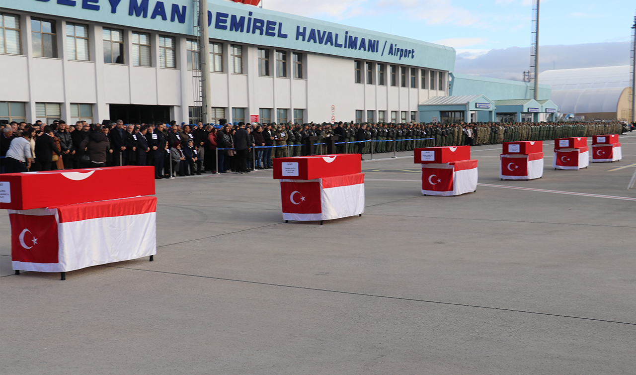 Şehitlerin Türk bayrağına sarılı cenazeleri, eskort eşliğinde Süleyman Demirel Havalimanı'na getirildi. Burada düzenlenen askeri törende, şehitlerin öz geçmişleri okundu, dua edildi.