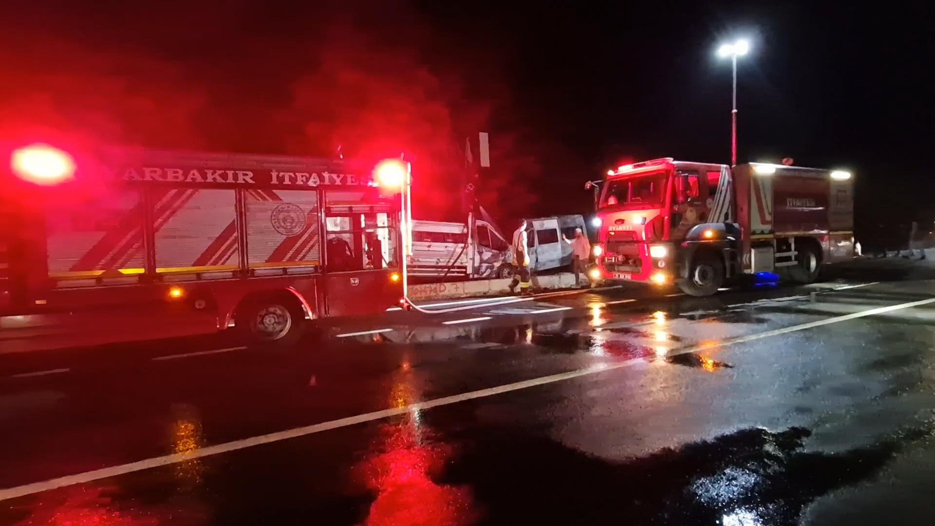 Kaza, gece saatlerinde Diyarbakır- Silvan karayolunda meydana geldi. Sürücülerinin isimleri ve plakaları öğrenilmeyen kamyonet ve minibüs, kafa kafaya çarpıştı. Kazada minibüsteki 2'si çocuk 11 kişi yaralandı. Kaza sonrası araçlar, motor kısmından alev alarak yanmaya başladı. İhbarla bölgeye sağlık, itfaiye, jandarma ve polis ekipleri sevk edildi. Yaralılar, ilk müdahalenin ardından çevredeki hastanelere kaldırılarak tedaviye alındı. Yangın ise itfaiye ekiplerinin müdahalesiyle kontrol altına alınarak söndürüldü.