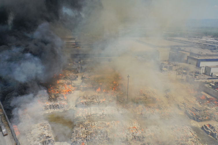Söke Organize Sanayi Bölgesi'ndeki bir kağıt fabrikasının sıkıştırılmış kağıt depolama alanında 12 Temmuz akşamı çıkan yangında 45. saat geride kaldı.