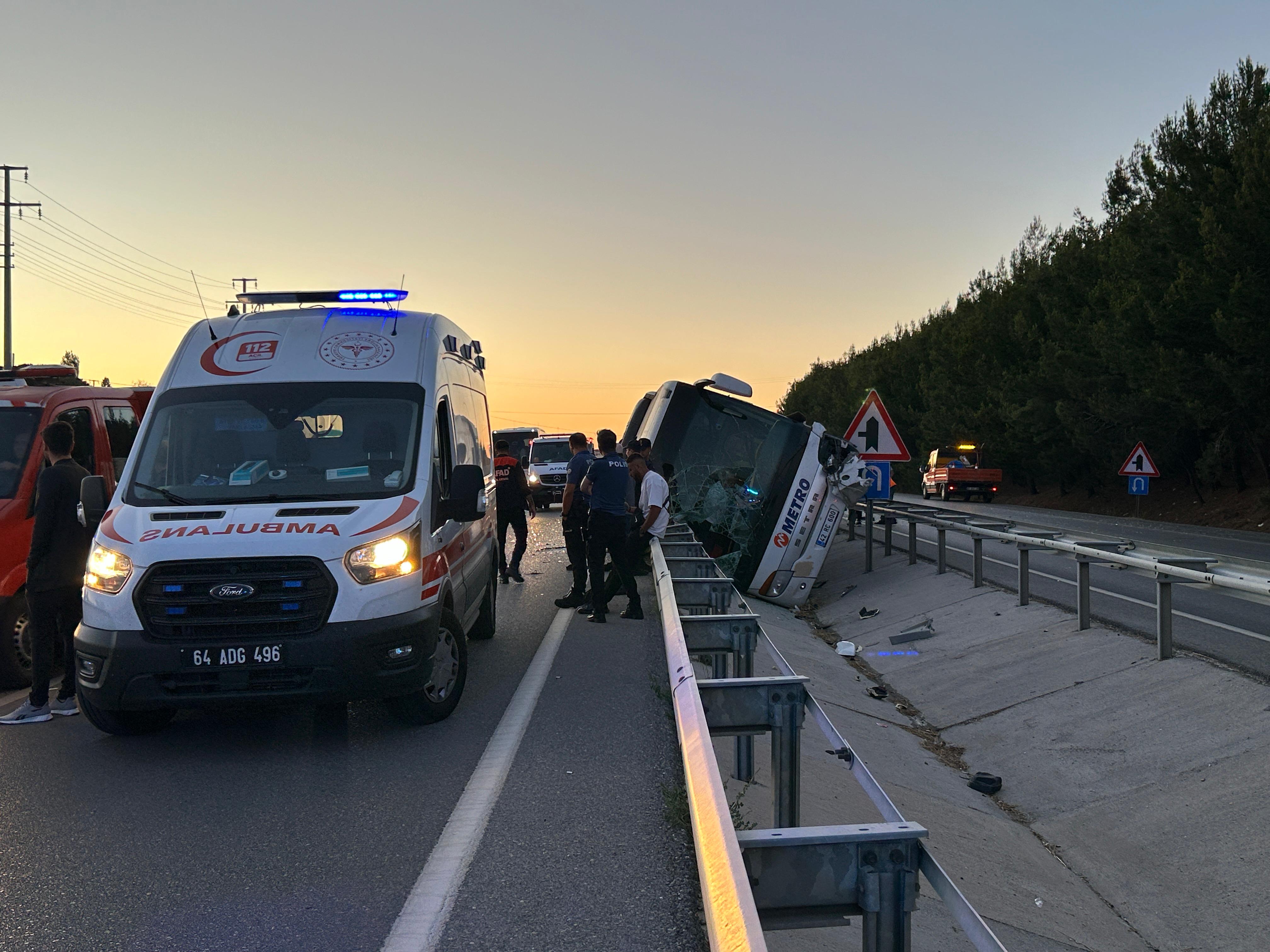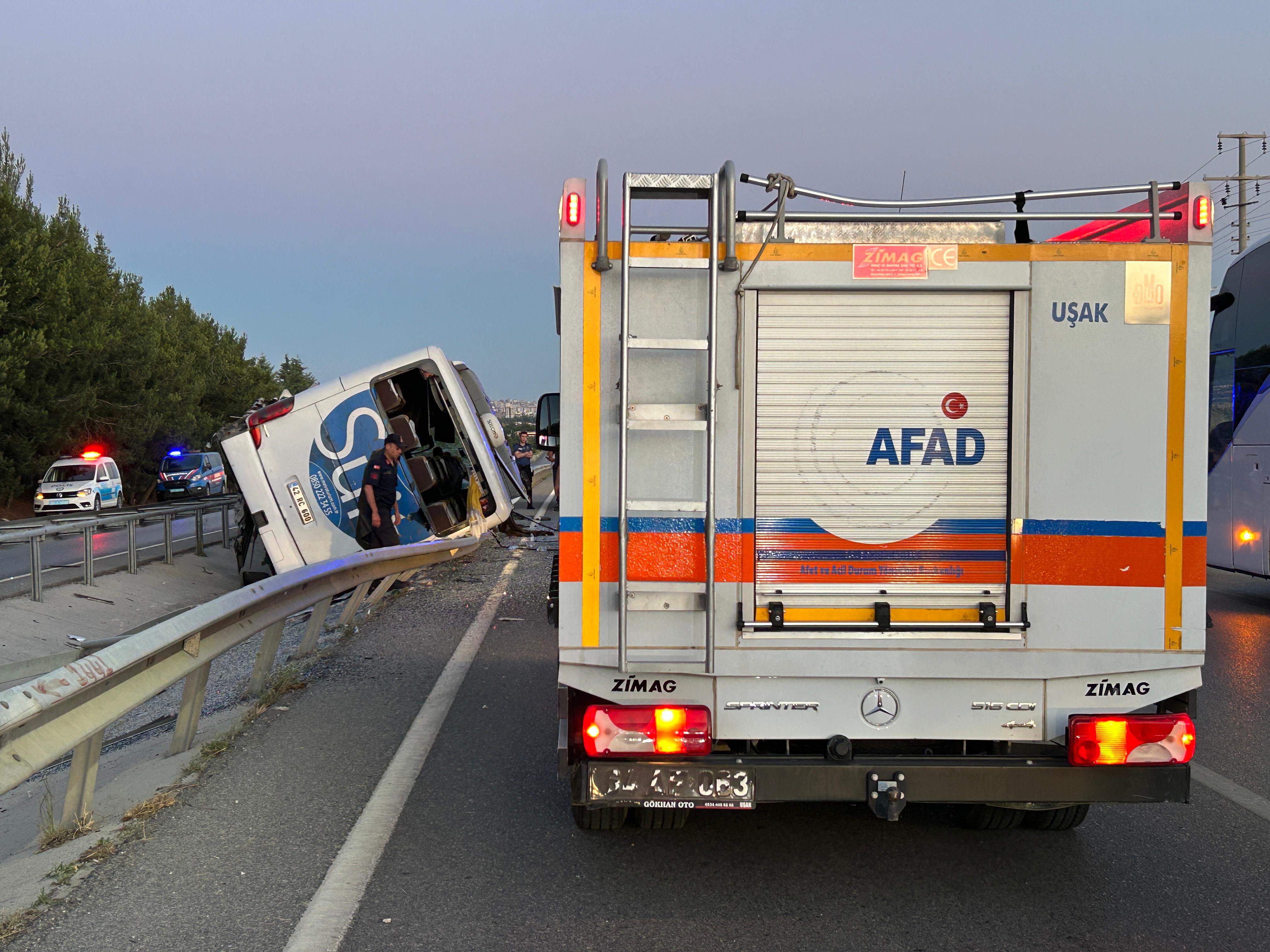 Hatay-İzmir seferini yapan O.Ö. (32) idaresindeki 42 RC 600 plakalı yolcu otobüsü, Afyonkarahisar-Uşak kara yolunda seyrederken Göğem Kavşağı yakınlarında kontrolünü kaybederek refüje çarptı. Otobüs, çarpmanın etkisiyle devrildi.