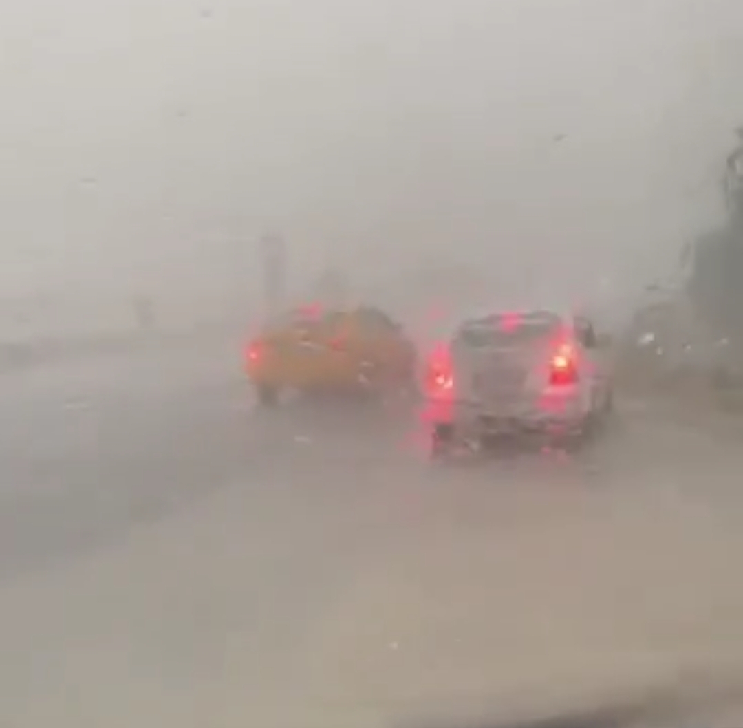 Şiddetli dolu yağışı bir vatandaşın cep telefonu kamerasına saniye saniye yansıdı. (Ertan Özkök)