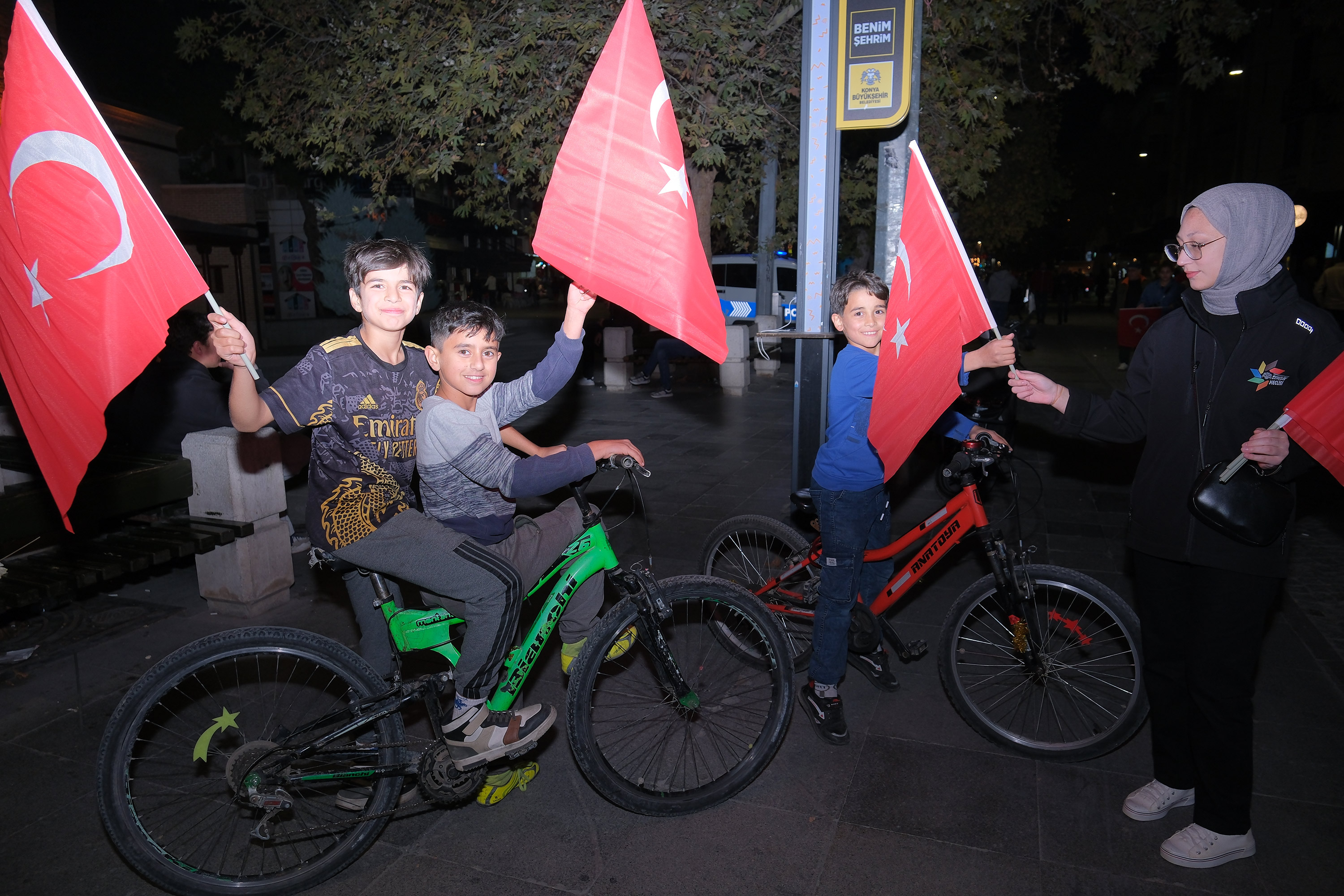 Cumhuriyetimizin temel değerlerinin genç kuşaklara hatırlatılarak milli birlik ve beraberlik vurgusunun da yapıldığı bayrak dağıtım etkinliğinde Konyalılar, bağımsızlığımızı simgeleyen bayrakları alarak, 29 Ekim Cumhuriyet Bayramı coşkusunu Gençlik Meclisi üyeleriyle birlikte yaşadı. (Veli Şengül)