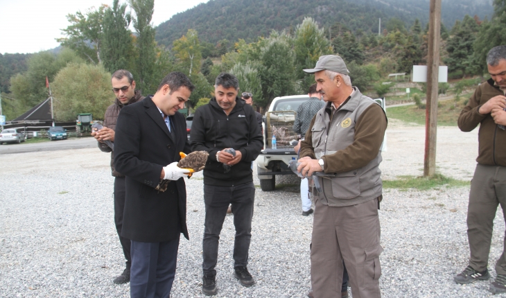 Şahin ve kaya güvercinleri, Beyşehir Kaymakamı Mehmet Kemal Akpınar ile Beyşehir Milli Parklar Şefi Fatih Demir'in de katıldığı bir programda doğaya salındı.