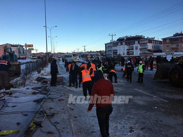 Konya merkezden öğrencileri alıp Cihanbeyli'de bulunan sağlık meslek lisesi, imam hatip lisesi ve başka bir okula götürdüğünü aktaran Mustafa T, şöyle konuştu: "Cihanbeyli girişindeki köprüden geçtim. Köprü bitiminden sonra 3 öğrenciyi indirmem gerekiyordu. Duracağım sırada öğrencilerden biri otogarın karşısındaki ışıklarda ineceğini söyledi. Ben de gaza bastım, araba gazda gitmeyince vites yükselttim, gaza bastım. Kırmızı ışık yanında ayağımı aniden gazdan çektim. O an kırmızı ışığa 500 metre, 1 kilometre gibi bir mesafe vardı. Ayağımı gazdan aniden çekince araç sol tarafa kaydı, refüje çarptı ve döndü. Ben de hafif sağ yapmak için direksiyonu çevirdim. Daha sonra araç sağ yattı, süründü ve elektrik direğine çarpıp durdu. Yolda gizli buzlanma varmış. Benim hızım 40-45 kilometre civarındaydı."
