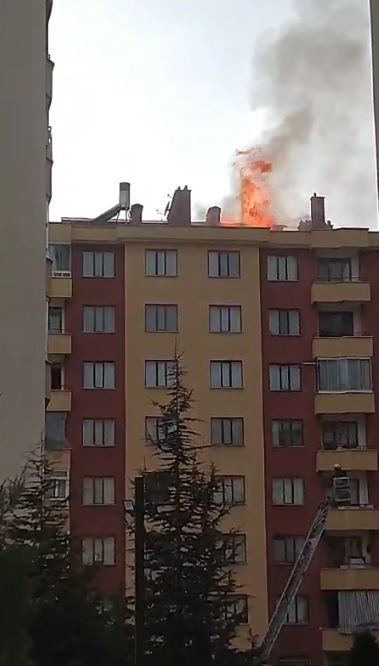 8 katlı bin binanın çatısında çıkan yangın vatandaşlar tarafından fark edilmesinin ardından ihbar üzerine olay yerine itfaiye ve polis ekipleri sevk edildi.