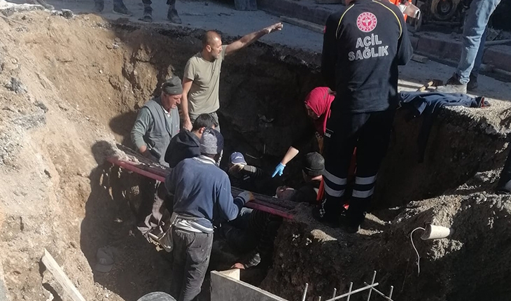 Dalyan Mahallesi'nde yürütülen altyapı çalışmalarında çukura boru döşeyen işçilerden Zeynel U'nun belden aşağısı kayan toprağın altında kaldı.