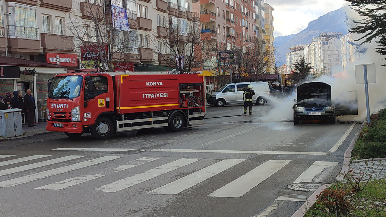 Sürücü araçtan inerek itfaiye ve polis ekiplerini aramasının ardından kısa sürede olay yerine gelen ekipler yangına müdahale etti.