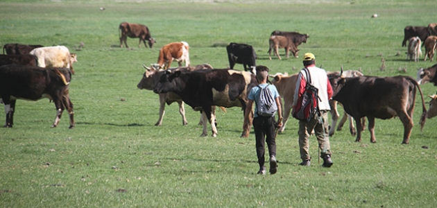 Konya'nın Beyşehir ilçesinde hayvancılıkla uğraşanlar, yayla ve meralarda, mesaisine devam ediyor.