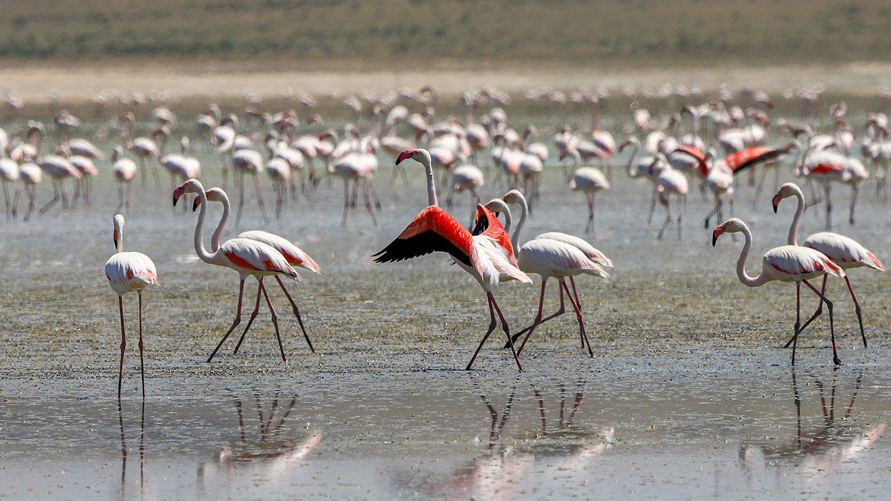 Flamingoların beslenmesi için hayati önem taşıyan gölün, her geçen gün küçülmesi doğaseverleri de endişelendiriyor.