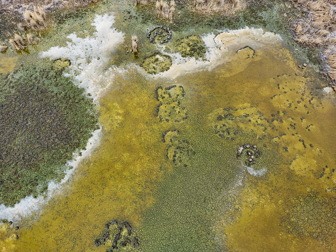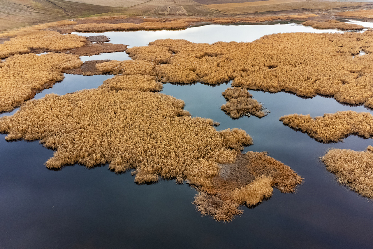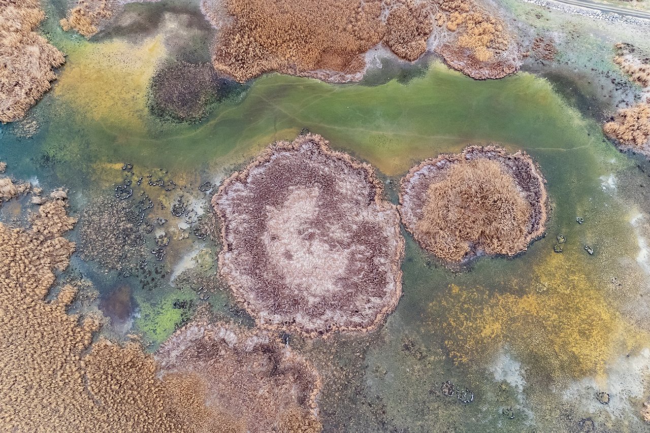 Konya'nın Kulu ilçesinde yer alan Gök Gölü'nde sular çekildi. Kulu'nun doğal zenginlikleri arasında yer alan Gök Gölü, kış aylarında suların çekilmesiyle birlikte renkli görüntüler oluşturdu. Renkli görüntüsüyle göz kamaştıran göl havadan görüntülendi.
