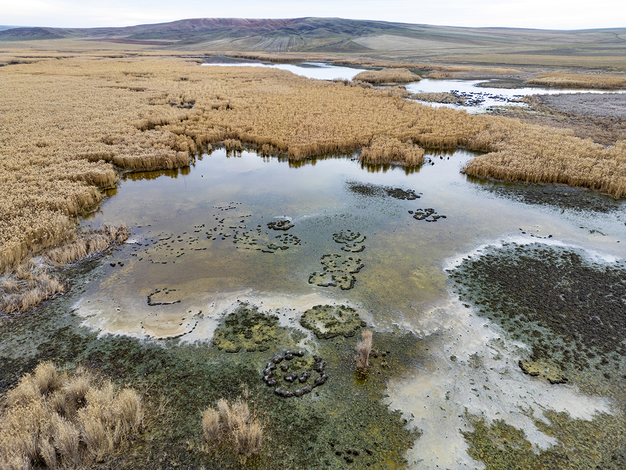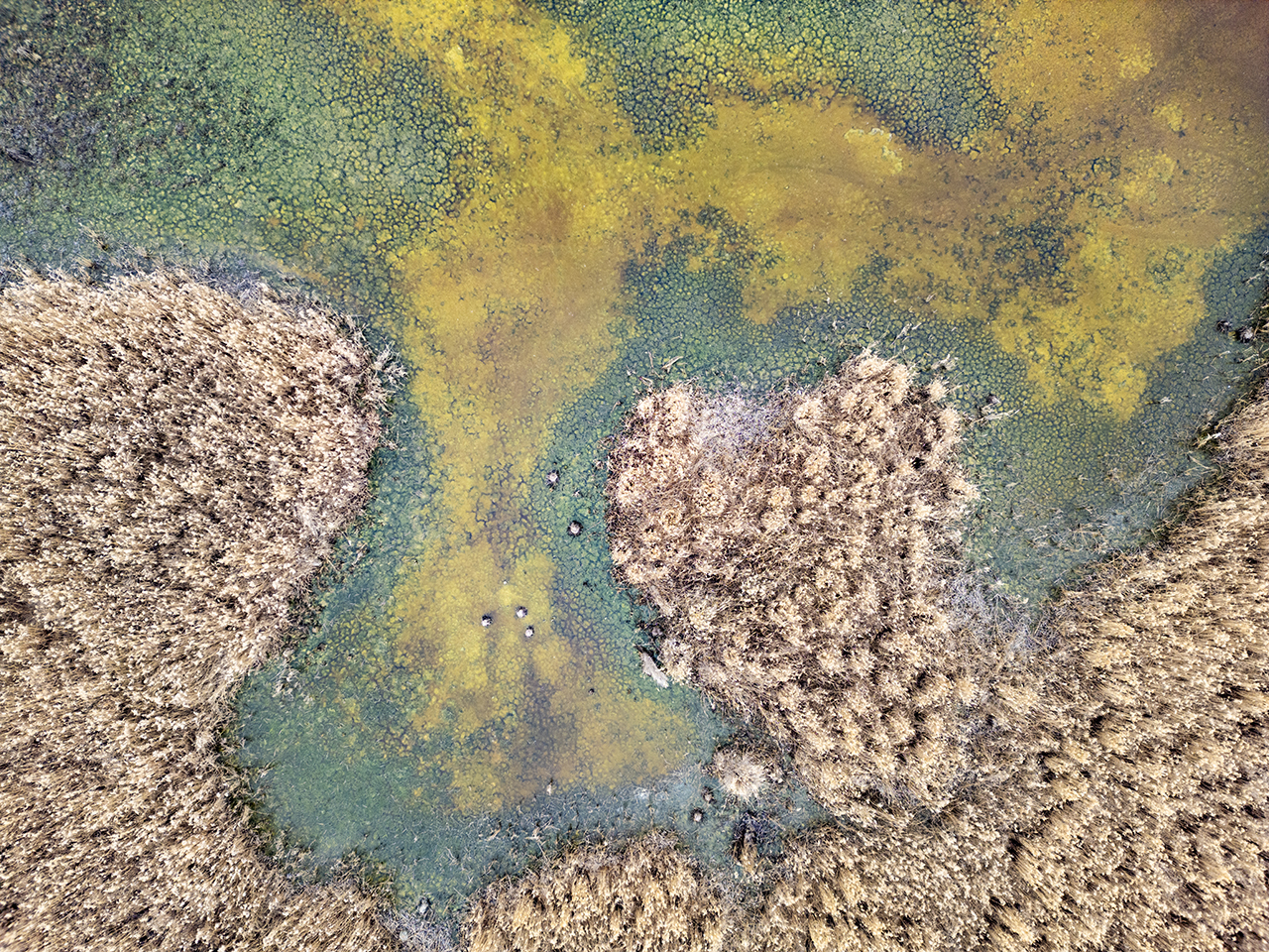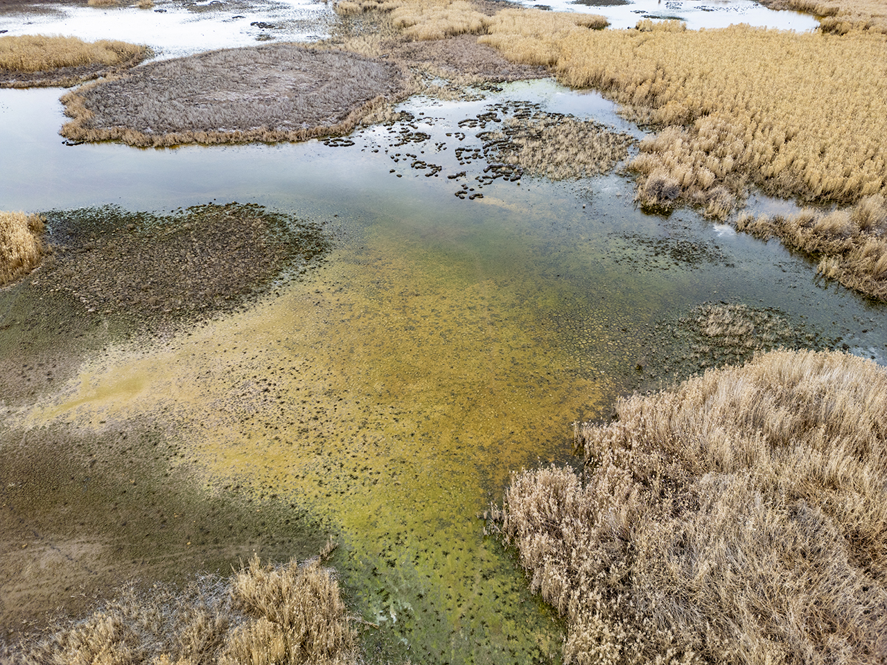 Konya'nın Kulu ilçesinde yer alan Gök Gölü'nde sular çekildi. Kulu'nun doğal zenginlikleri arasında yer alan Gök Gölü, kış aylarında suların çekilmesiyle birlikte renkli görüntüler oluşturdu. Renkli görüntüsüyle göz kamaştıran göl havadan görüntülendi.