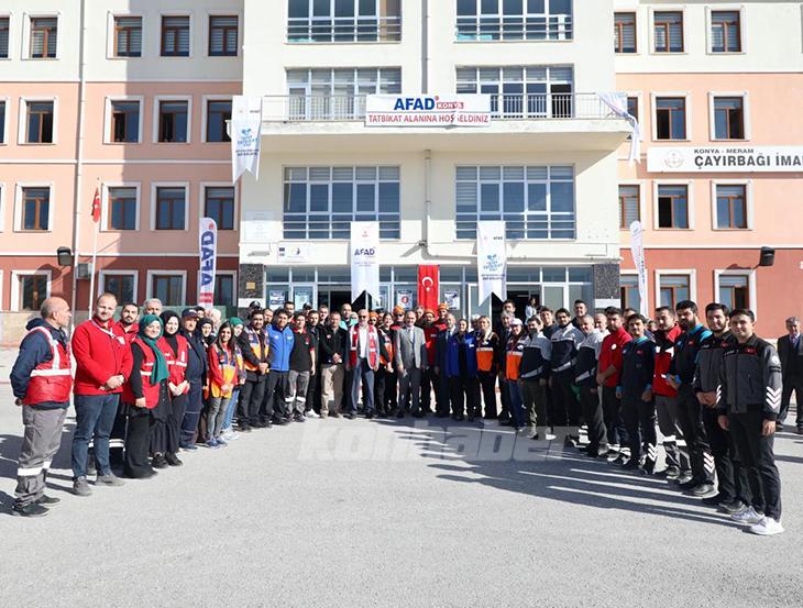 "Deprem Anı Çök Kapan Tutun ve Tahliye Tatbikatı” na Vali Vahdettin Özkan’ın yanı sıra AFAD İl Müdürü Yıldız Tosun, İl Müftüsü Prof. Dr. Ali Öge, Konya AFAD Arama Kurtarma personeli, AFAD Gönüllüleri, İtfaiye Arama Kurtarma, Kızılay, UMKE, İHH, Beşir, Alperenler, Cansuyu ve Hayrat ekipleri ile öğretmenler ve öğrenciler katıldı.