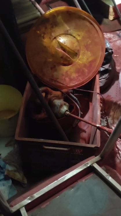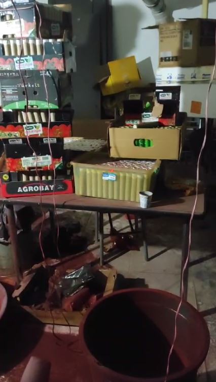 Adrese intikal eden ekipler iş yerinin bodrum katında Y.Y isimli şahsa ait olan 2 adet büyük leğen, toz şeklinde renkli sis yapmaya hazır malzeme ve yaklaşık 3 bin ila 4 bin arasında renkli sis kartuşu yakaladı.