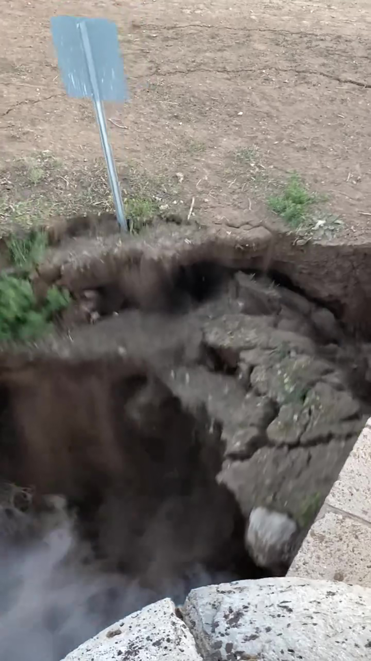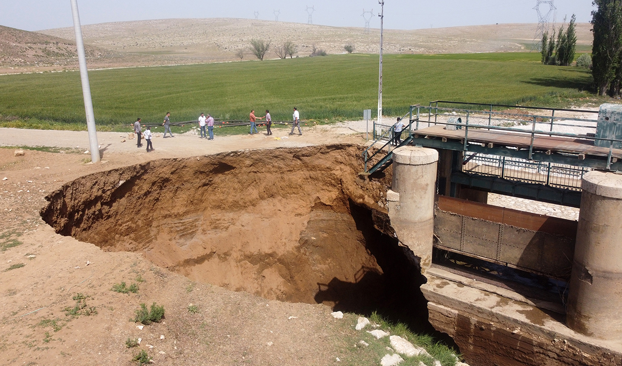 Oluşum anı cep telefonu kamerasıyla görüntülenen dev çukuru kapatmak için DSİ ekipleri, proje çalışması başlattı.