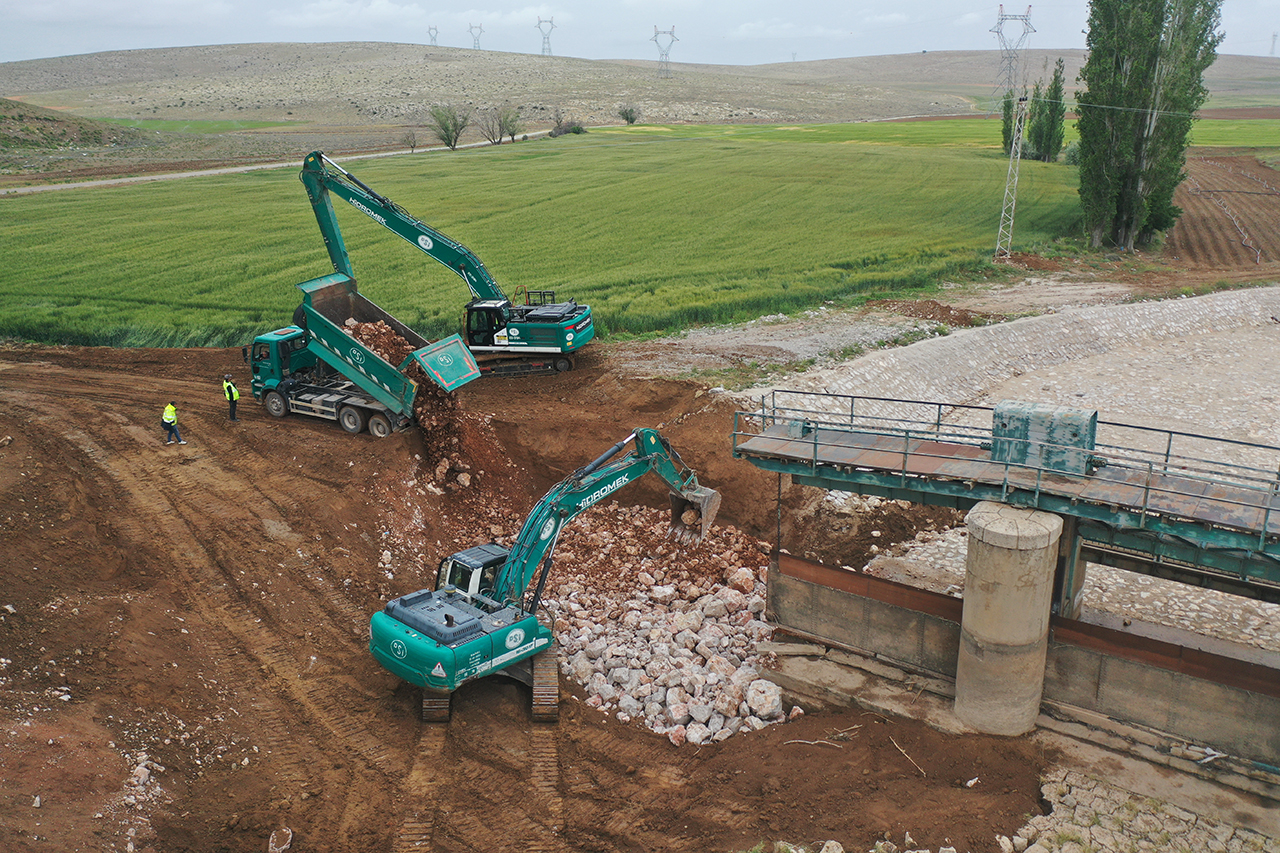 İş makineleriyle büyük kayalarla doldurulan yere, kil ve çakıl başta olmak üzere onlarca kamyon malzeme getirildi. Obruğun kapatılmasıyla kanala tekrar su verilmeye başlandı.
