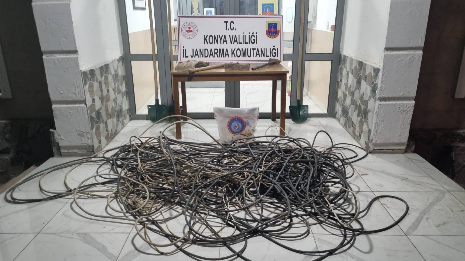 Olay yerinde yakalanan şüphelilerden 4 adet kürek, 1 adet balyoz, 3 adet çekiç, 1 adet sopa, 2 adet murç ve 400 metre kablo ele geçirildi.