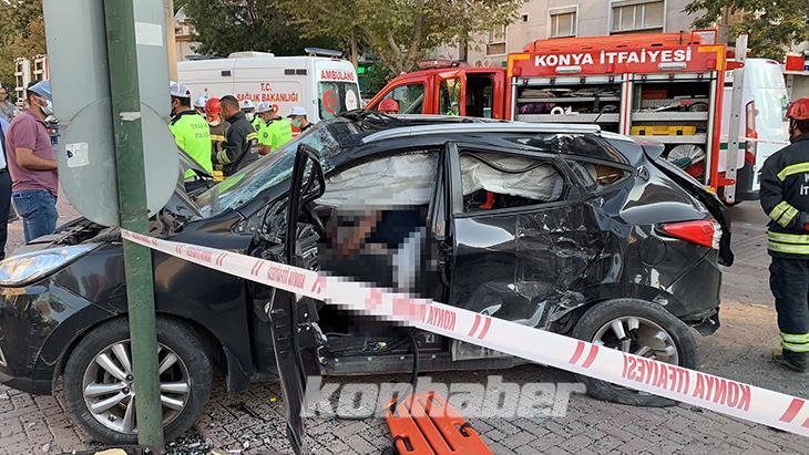 Konya'da iki otomobilin çarpışması sonucu 1 kişinin hayatını kaybetti, 2 kişini de yaralandı kaza anı MOBESE kameralarına yansıdı.