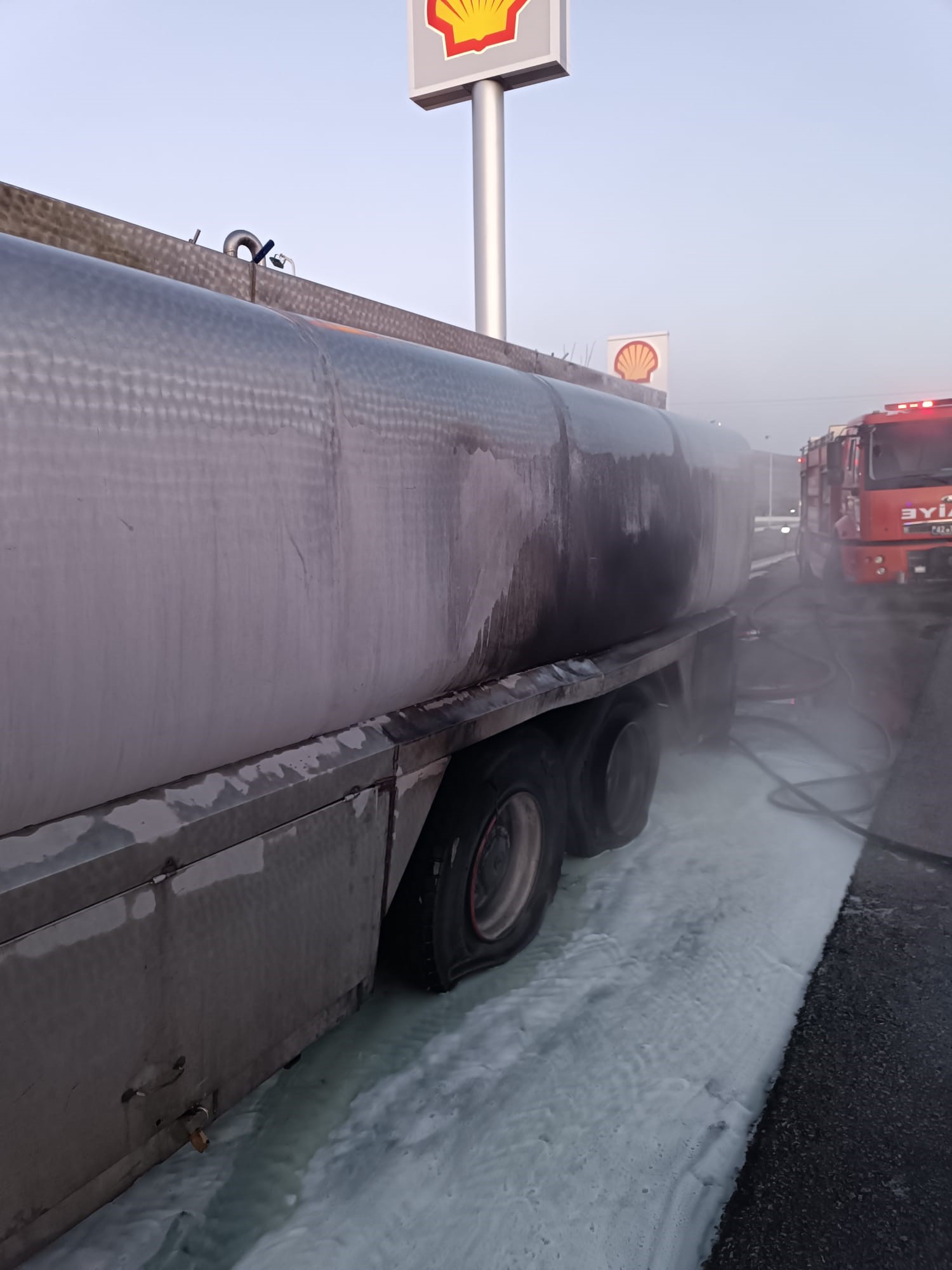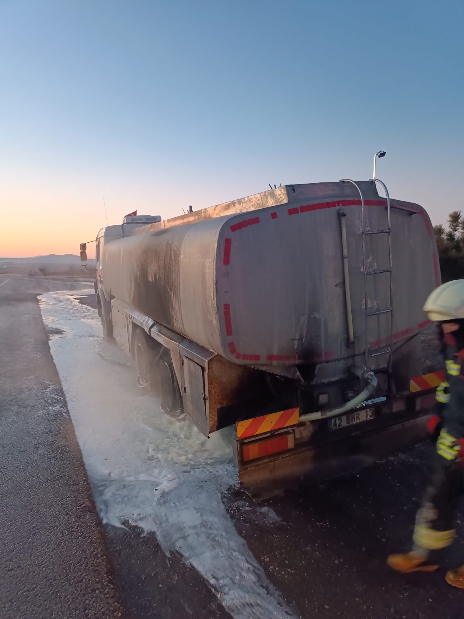 Olay, Konya - Karapınar karayolunda yaşandı. Edinilen bilgiye göre, Veysel B. idaresindeki 42 BHR 13 plakalı süt tankeri, Acıgöl mevkisine geldiğinde tankerin alt kısmından yanmaya başladı. Yükselen alevleri fark eden sürücü aracı durdurup kendini dışarıya atarak itfaiyeyi aradı.