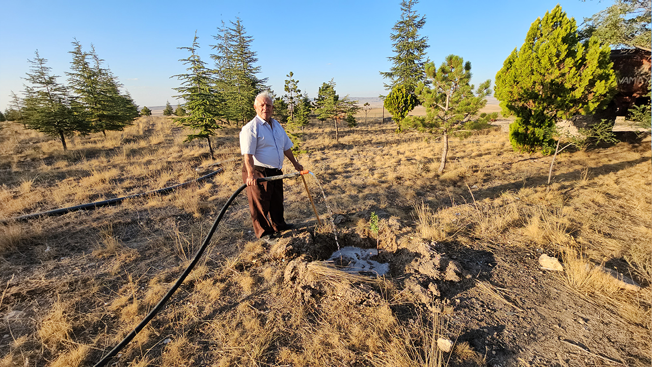 Ormana sahip çıkmaları konusunda bölge halkına da uyarıda bulunan Uludağ, "Burası 20 dekar ve 2 bin 500 çam ağacı var. Diğer meyve ağaçlarını dikemedik. Çünkü su zayıf olduğu için meyve ağaçları burada olmuyor. Ama çam ağaçları susuzluğa dayanıyor. Halen haftada bir gelip suluyoruz. Elimizden geldiği kadar burayı bu vaziyete getirdik. Kulu bölgesinde ağaç durumu çok zayıf. Bir şehri yeşillik güzelleştirir, tabiat güzelleştirir. Buraya sahip çıkalım gençler, burası size emanet. Burası hepimizin. Burayı sevin" diye konuştu.