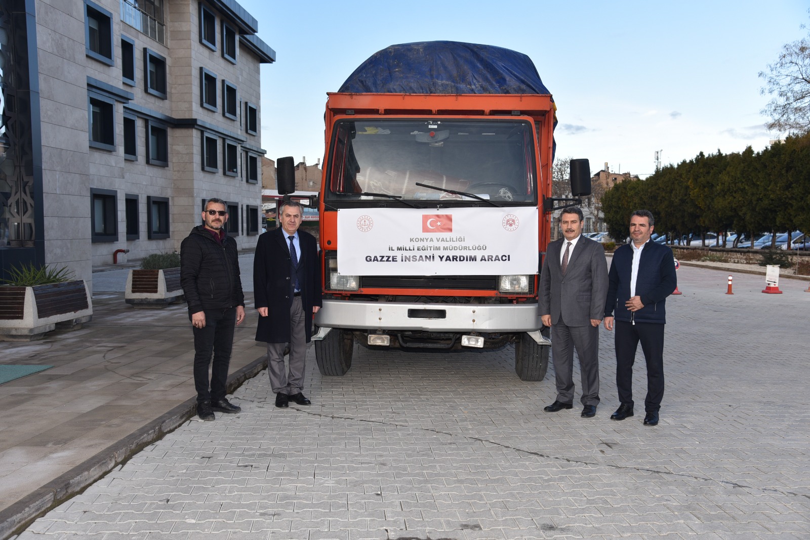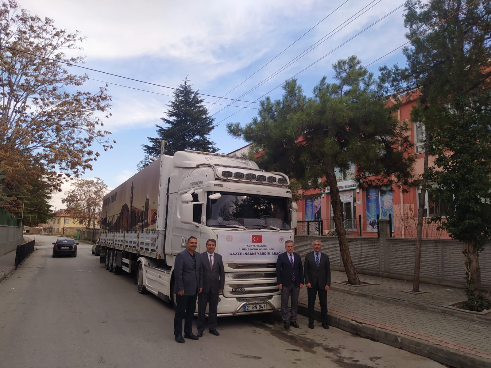 Konya İl Milli Eğitim Müdürlüğü tarafından hazırlanan Gazze'ye yardım tırının içerisinde eşofman,havlu takımı gibi temel ihtiyaç malzemeleri yer aldı.
