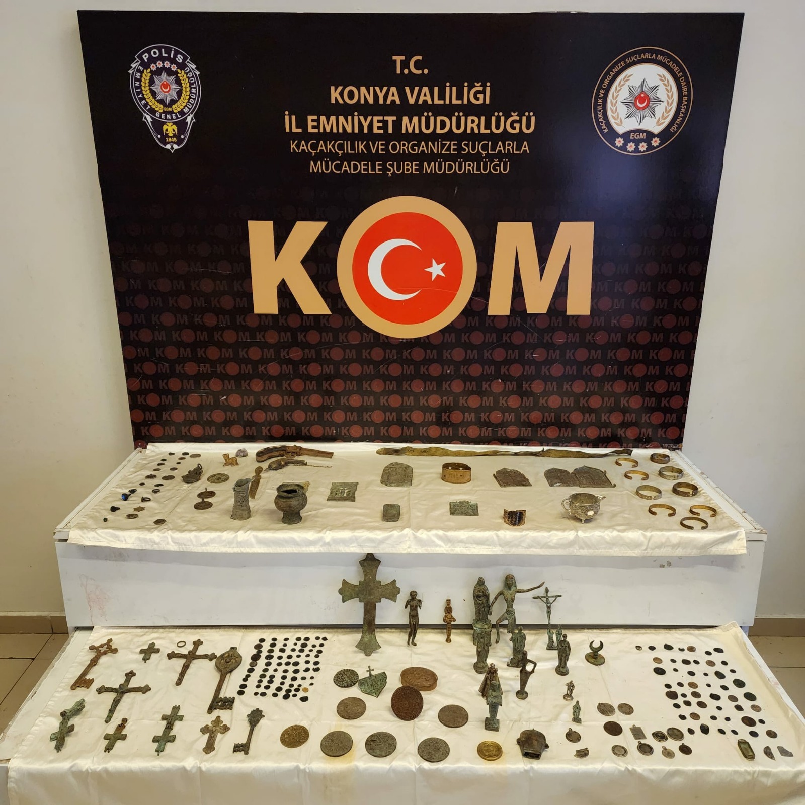 KOM Şube Müdürlüğü ekipleri kent merkezinde tespit ettikleri bir aracın içerisinden 129 adet sikke ve 92 adet tarihi eser niteliğinde obje ele geçirdi. Yapılan operasyonlarda toplam 28 şüpheli gözaltına alınırken ele geçirilen ürünlerin piyasa değerinin yaklaşık 6 milyon TL olduğu belirlendi.