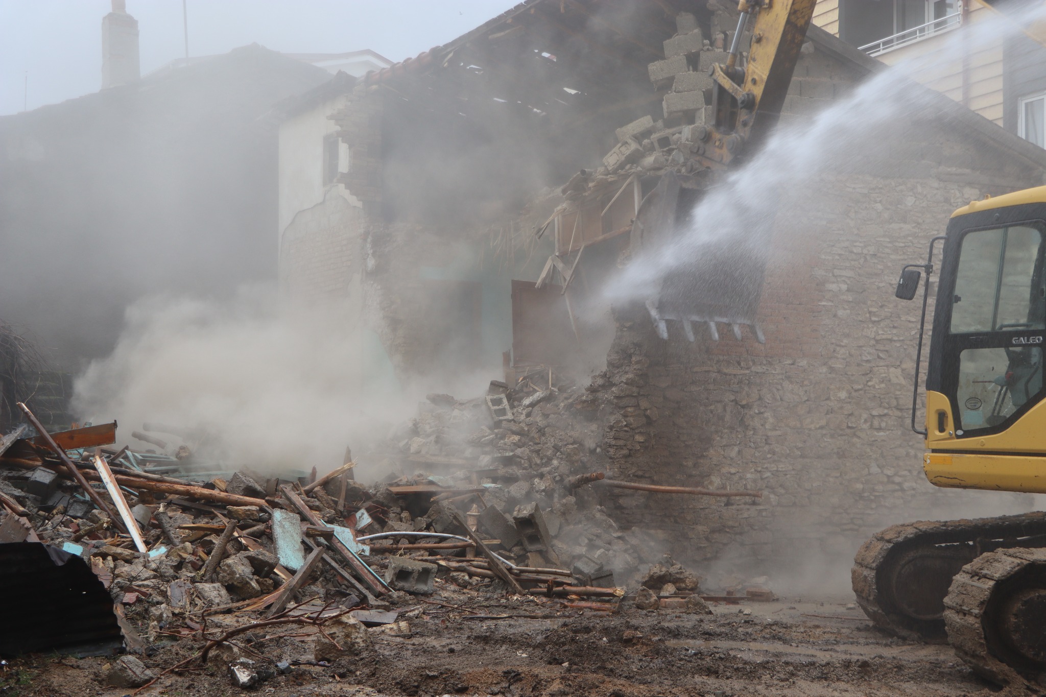Beyşehir Belediyesi Fen İşleri Müdürlüğüne bağlı yıkım ekiplerinin kontrolünde, resmi işlemleri tamamlanan kullanılamaz durumdaki metruk yapılar yıkarak ortadan kaldırıyor.