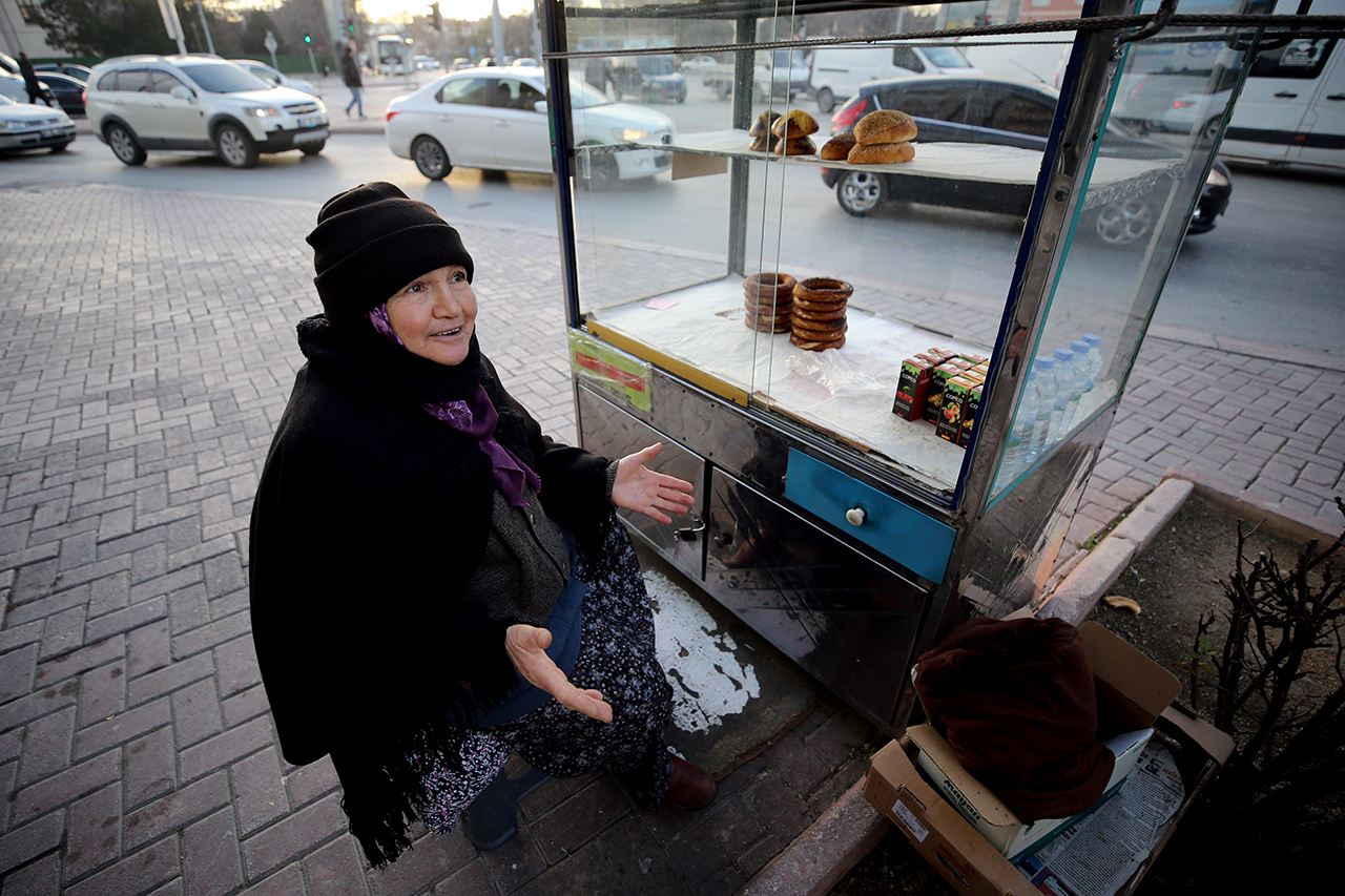 Yıllardır simit tezgahının başında olduğunu anlatan Öztürk, "Üzüntüden, sıkıntıdan başımda geçmeyen ağrılar oldu. Yine de işimi bırakmıyorum. Çünkü 10 yaşından beri çalışıyorum. Çalışmayı çok seviyorum. Eşime destek oluyorum. Çünkü eşimi çok seviyorum. Kimseye muhtaç yaşamayalım diye kendi paramızı kazanıyorum." diye konuştu.