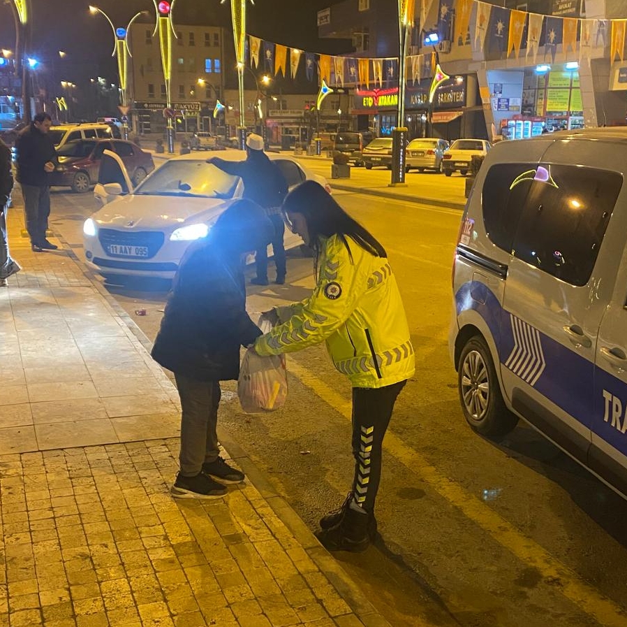 Üç ayların gelişini müjdeleyen ve Konya'ya özgü bir gelenek olan şivlilik gününde, sahada görevli polis memurları çocuklara şivlilik ikram ederek sevinçlerine ortak oldu.