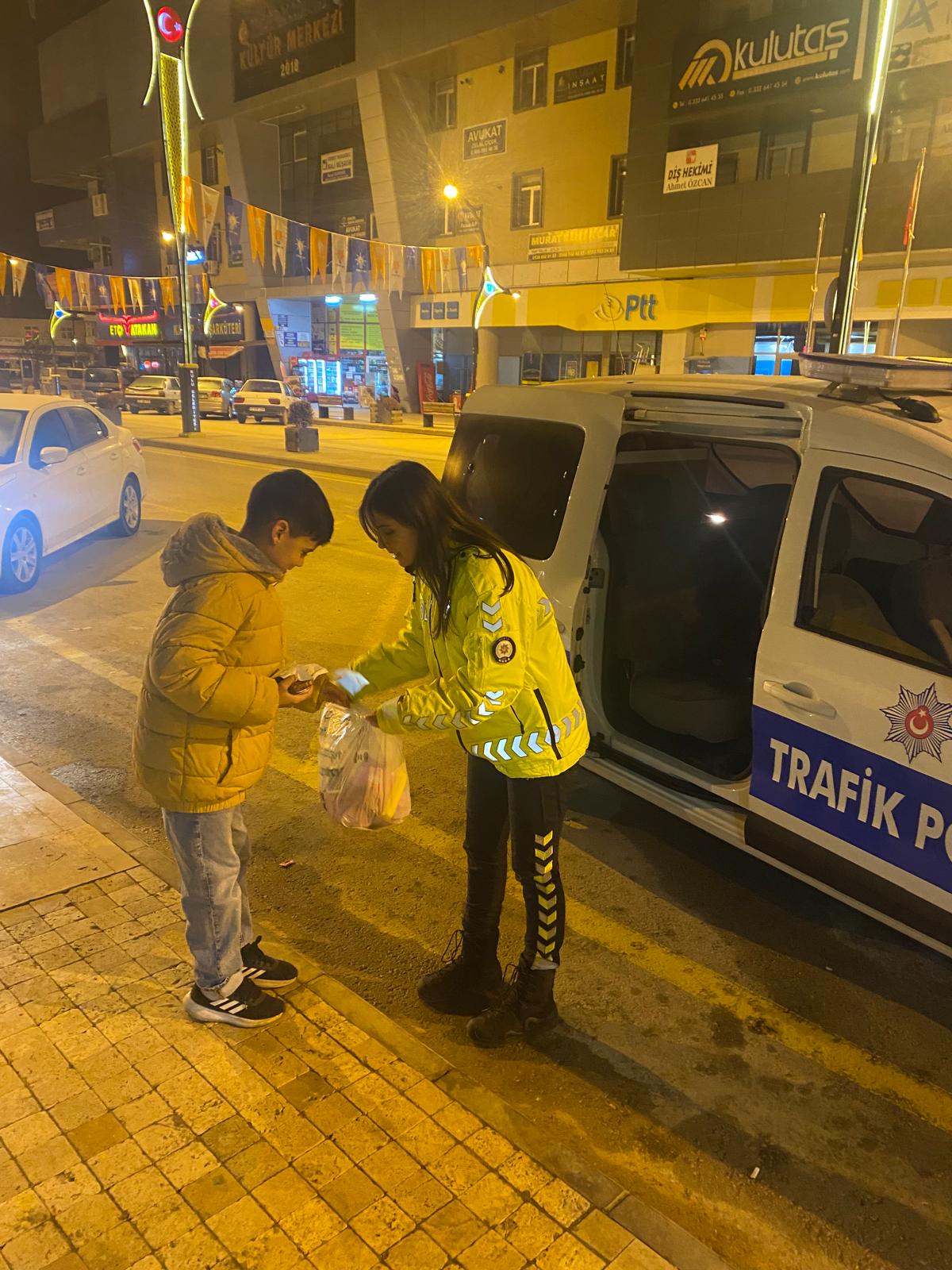 Çocuklarda ikramlarından dolayı polis abi ve ablalarına teşekkür etti.(Ertan Özkök)