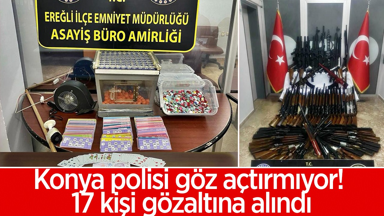 Ereğli İlçe Emniyet Müdürlüğü ekiplerince ruhsatsız silah ticareti yapan ve kullanan şahıslara yönelik yapılan çalışmalarda 68 adet Ruhsatsız Av Tüfeği, 5 adet Ruhsatsız Tabanca ve 16 adet Kurusıkı tabanca yakalanarak el konuldu. 5 kişi gözaltına alındı.
