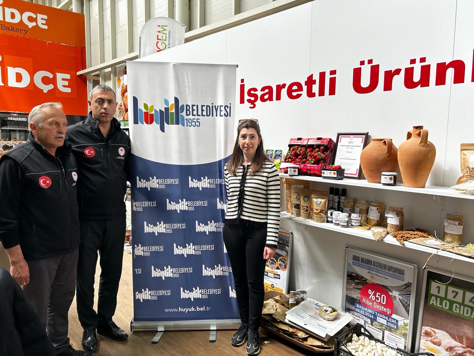 İlçe Tarım Müdürlüğü tarafından fuarda açılan stantta, Hüyük'ün coğrafi işaretli organik çileği ile ürünleri yer aldı.