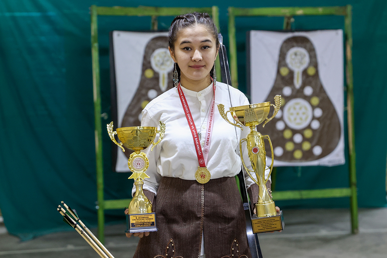 Konya Ticaret Odası (KTO) Karatay Üniversitesi'nde burslu okuyan ve 5 dil bilen Akhunova, İktisadi ve İdari Bilimler Fakültesi Uluslararası Ticaret ve Lojistik Bölümü'nde gördüğü eğitimin yanı sıra Meram Belediyespor Geleneksel Türk Okçuluğu Takımı'nın başarısı için ter döküyor.