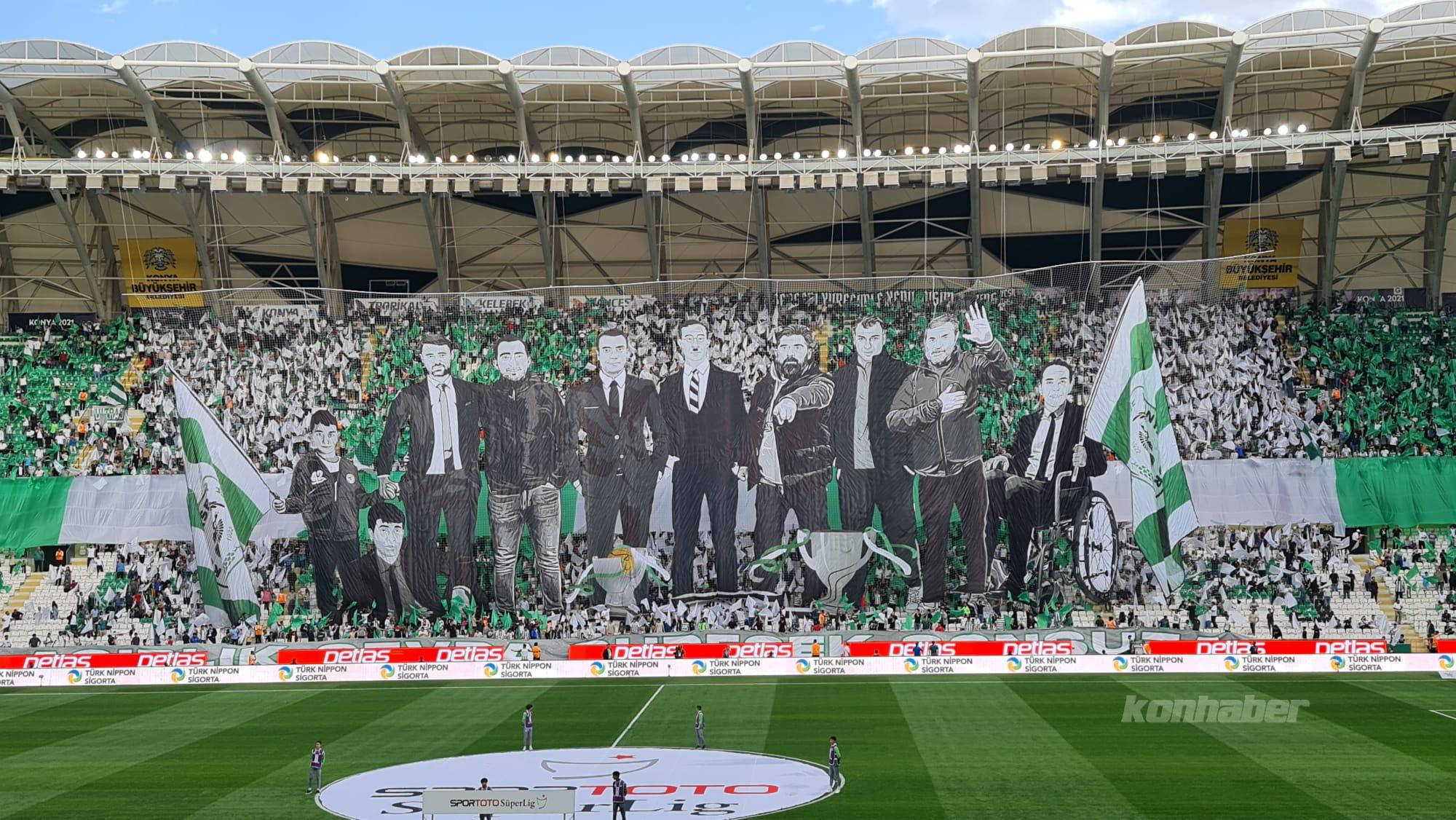 Medaş Konya Büyükşehir Stadyumu’ndaki karşılaşmanın öncesi Konyaspor taraftarı koreografi gösterisi yaptı.