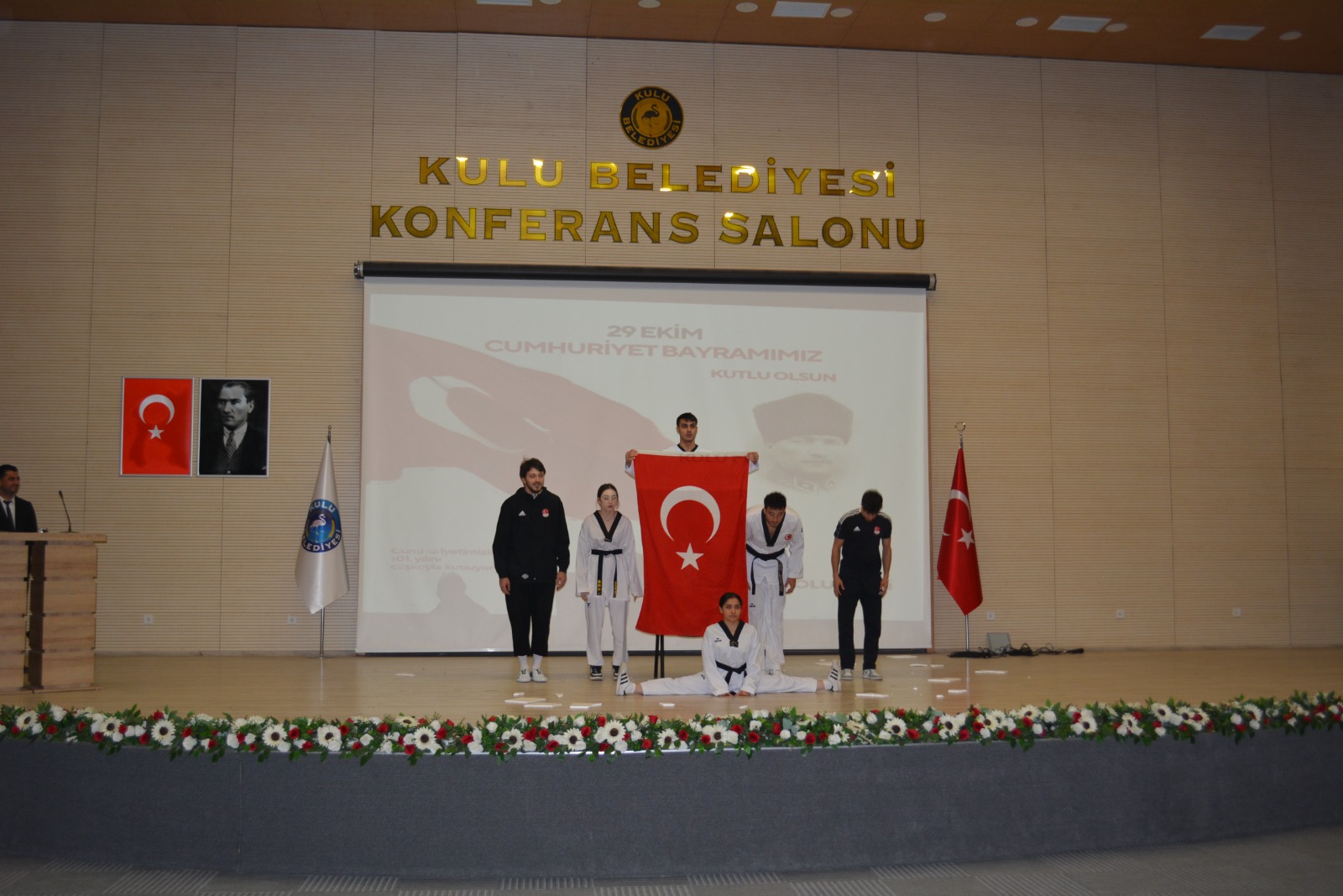 Kulu'da önceki gün çelenk sunumu ile başlayan etkinlik, Kulu Kaymakamı Ömer Faruk Canpolat, Belediye Başkanı Abdurrahim Sertdemir ve Cumhuriyet Savcısı Enis Şadi Saka'nın kaymakamlık makamında tebrigatları kabul etmesiyle devam etti.