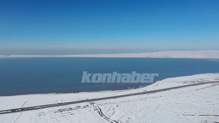 Tuz Gölü'nün kıyı kesimleri de havadan görüntülenirken, son yağışların göle fayda sağlaması bekleniyor. Türkiye'nin tuz ihtiyacının yüzde 60'ını karşılayan ve Flamingoların (allı turna) kuluçkaya yattığı en önemli yerler arasında yer alan Tuz Gölü, kar manzarasıyla da görsel şölen oluşturdu.