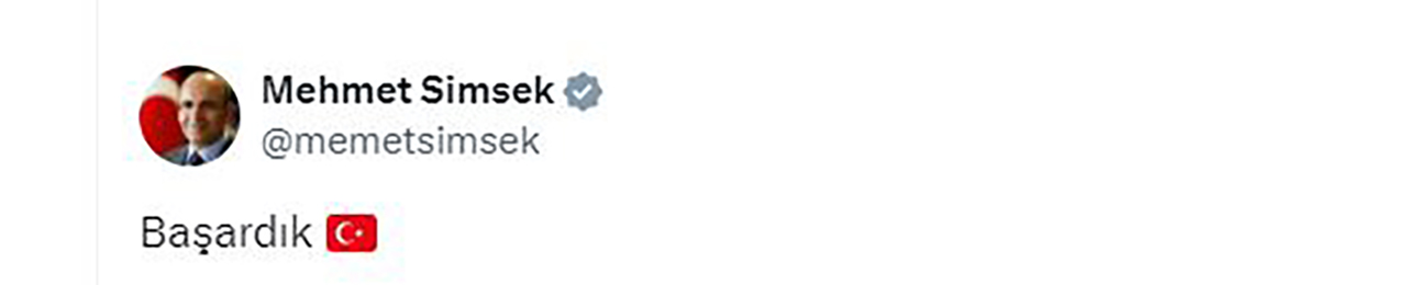 Singapur'da çeşitli temaslar yürüten Şimşek, X hesabından "Başardık" paylaşımında bulundu. Şimşek'in bu paylaşımı Türkiye'nin gri listeden çıktığı şeklinde yorumlandı. Resmi açıklama ise önümüzdeki saatlerde yapılacak.
