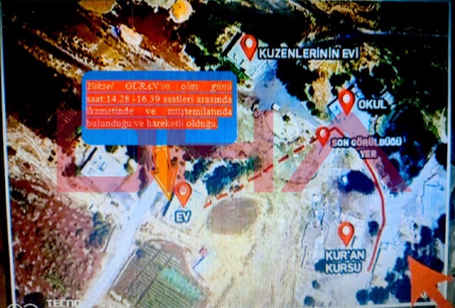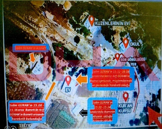 3-Enes Güran’ın 21.08.2024 günü saat 14.30 sıralarında kendi ikametinde bulunduğu ve aynı gün saat 15.41’den 15.51’e kadar ikametinde bulunmaya devam ettiği, saat 15.57 sıralarında Salim Güran’ın ikametine geçtiği, 16.06 sıralarına kadar Salim Güran’ın ikameti civarında bulunduğu değerlendirilmektedir.
