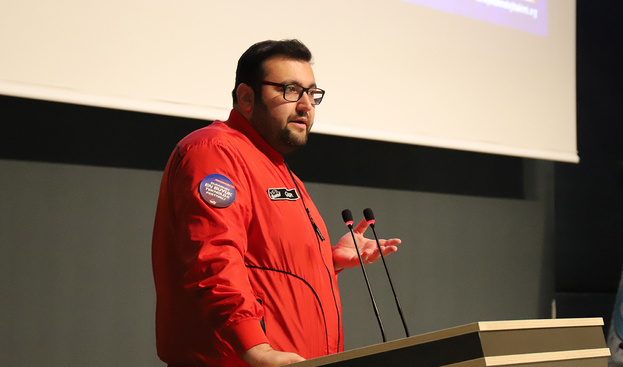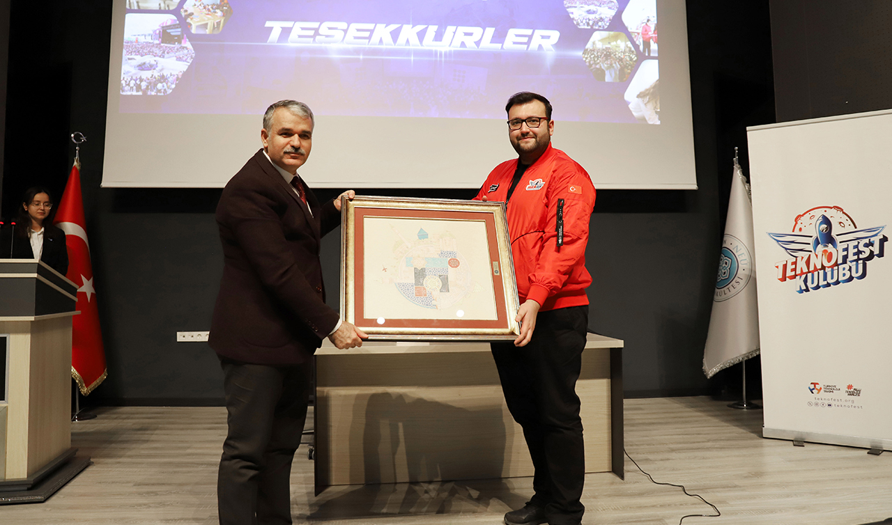 NEÜ TEKNOFEST Topluluğu Başkanı Tolga Dağlı ise, toplulukları ve yaptıkları çalışmalar hakkında bilgiler verdi.