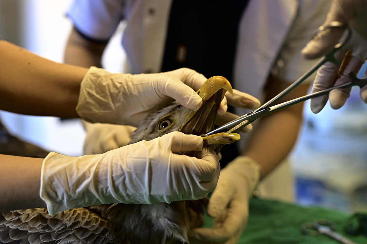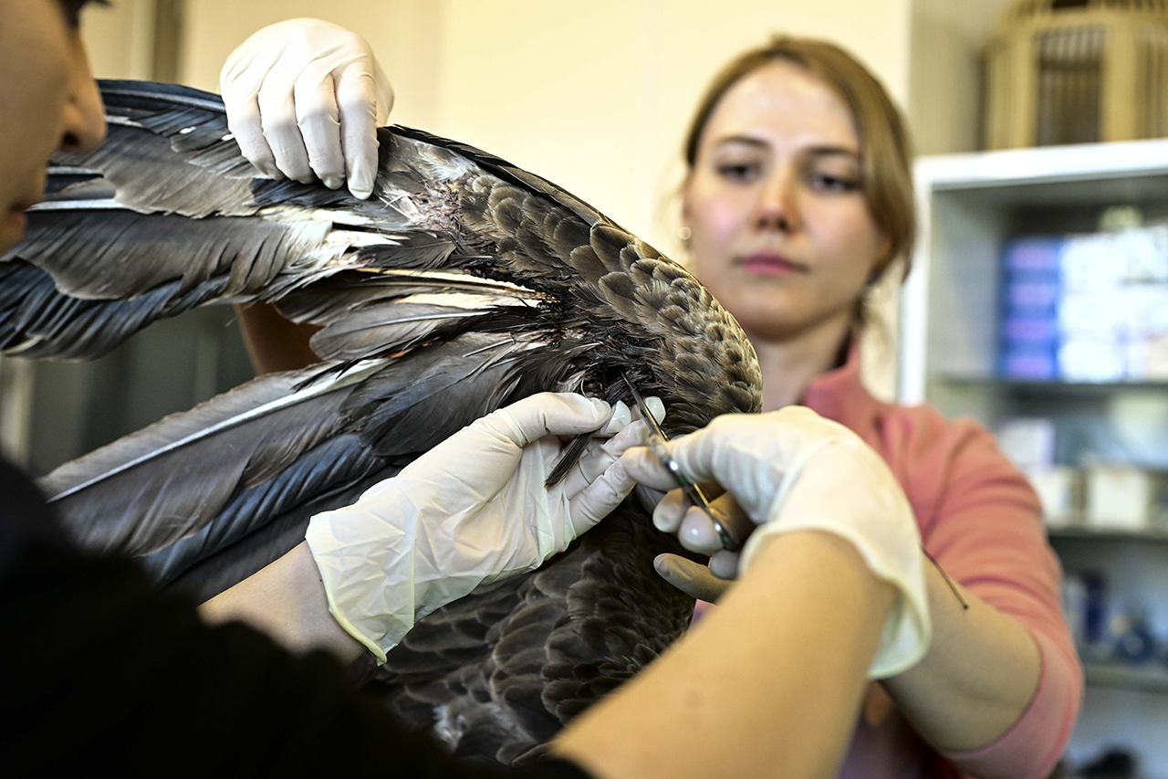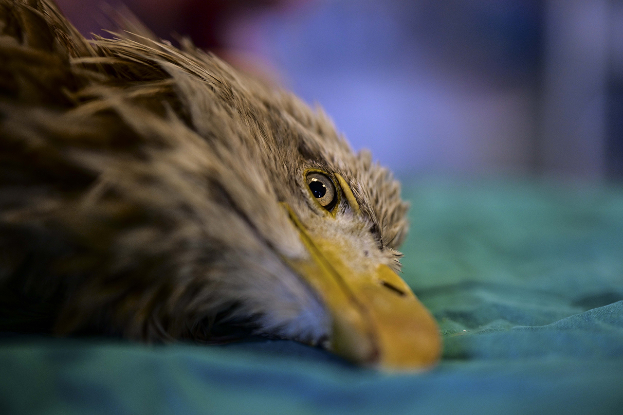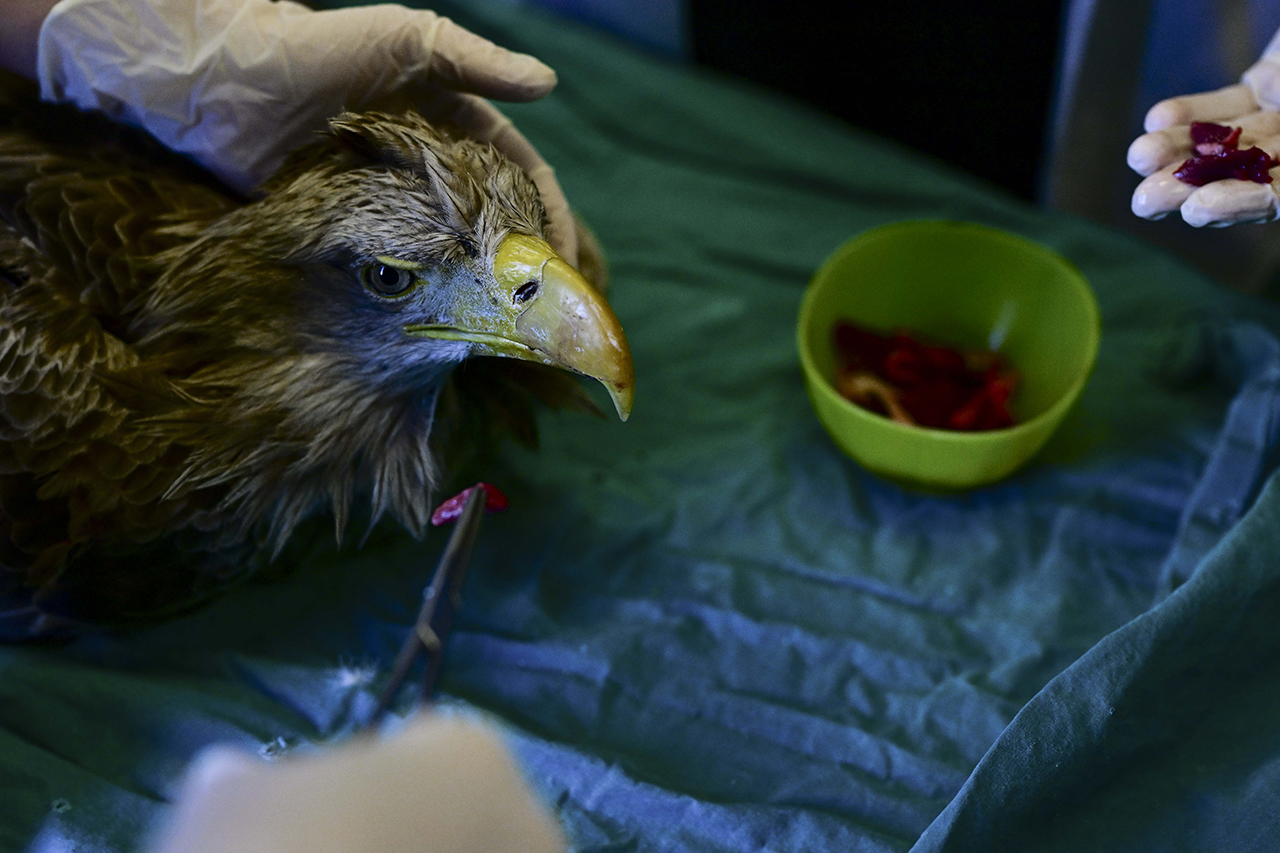 Son olarak geçen salı günü Nallıhan'dan getirilen, güçten düşmüş ve nesli tehlike altındaki ak kuyruklu kartalın tedaviye alındığını aktaran Ergin, şu bilgileri verdi: "DKMP 9. Bölge ekipleri tarafından birimimize getirildi, Nallıhan'da bulunmuş. Kanat ve boyun bölgesinde çok ciddi yaraları var ama bizi en fazla endişelendiren yaradan ziyade çok aç kalmış olması. Özellikle bu kadar büyük kanatlı yırtıcılarda, bu kadar uzun süreli açlık ne yazık ki hayati risk doğuruyor. Şu an onun besleme ve bakım programlarını ayarladık, damar içi gerekli desteğe başladık. Önümüzdeki birkaç gün kritik çünkü oldukça kötü durumda ve zayıflamış. Elimizden geleni yapacağız. Umuyoruz ki tekrar gökyüzüne ait olduğu yere dönebilsin."