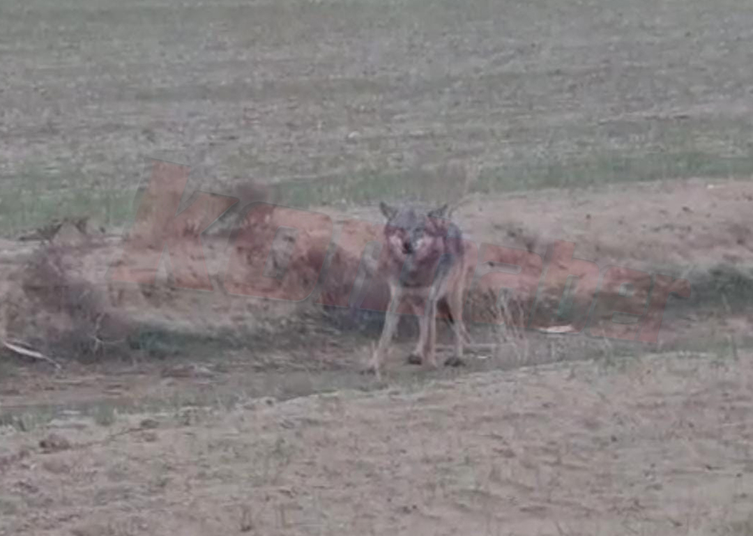 Çekilen görüntüde kurt'un boş bir arazide gezindigi görüldü.