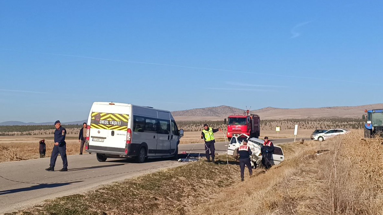 Basri Demir (42) idaresindeki 03 AFN 701 plakalı okul servis minibüsü, Alagöz köyü yakınlarında Mustafa Çimen'in (48) kullandığı 20 AGS 934 plakalı otomobille çarpıştı.