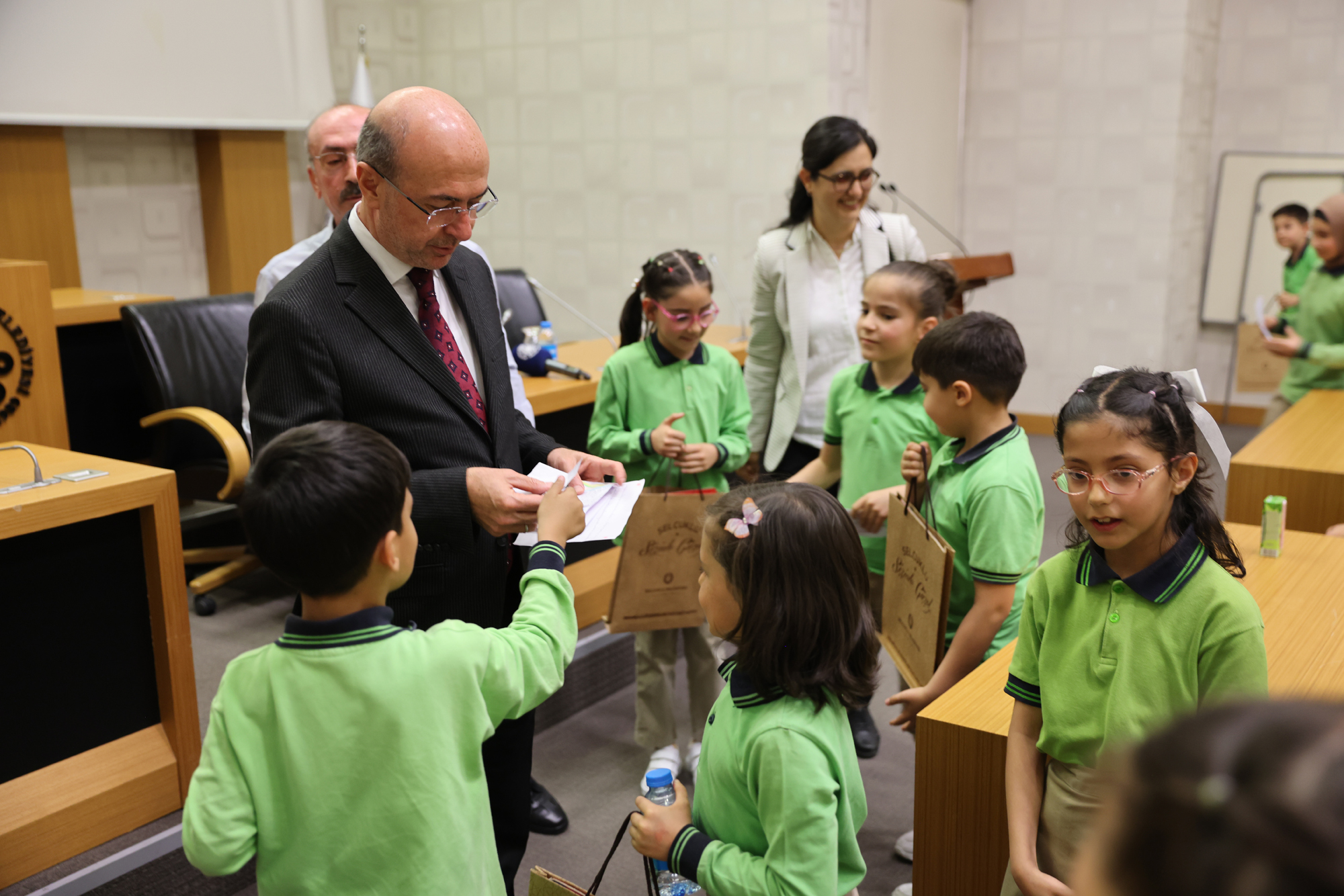 Şehit Erkan Kurşun İlkokulu ve Hakim Ömer Onsun İlkokulu öğrencileri ile öğretmenleri, Selçuklu Belediye Başkanı Ahmet Pekyatırmacı’yı ziyaret etti. Selçuklu Belediyesi Meclis Salonunda öğrenciler ile buluşan Başkan Pekyatırmacı belediye çalışmaları ve eğitim adına yapılan proje ve hizmetler hakkında öğrencilere bilgi verdi. Öğrenciler tarafından merak edilen soruları içtenlikle yanıtlayan Başkan Pekyatırmacı öğrencilere de gelecekleri ile ilgili sorular sordu.