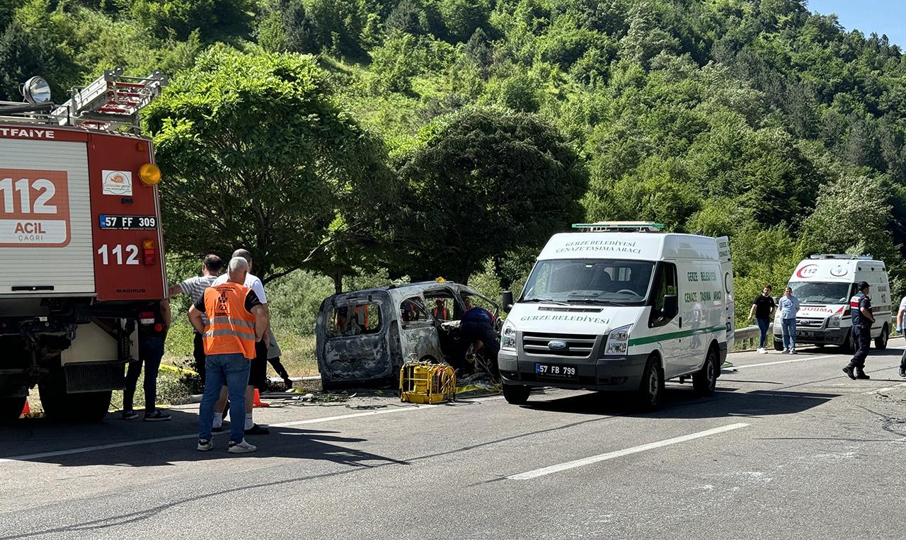 Araçtaki yangın, itfaiye ekiplerince söndürüldü. Kazada, hafif ticari aracın sürücüsü E.Ç'nin yanı sıra aynı araçta bulunan Gerze Devlet Hastanesi'nde görevli doktorlar Sena Sakin ve Mehmet Turan Yazlar ile otomobilde bulunan R.T. olay yerinde hayatını kaybetti.