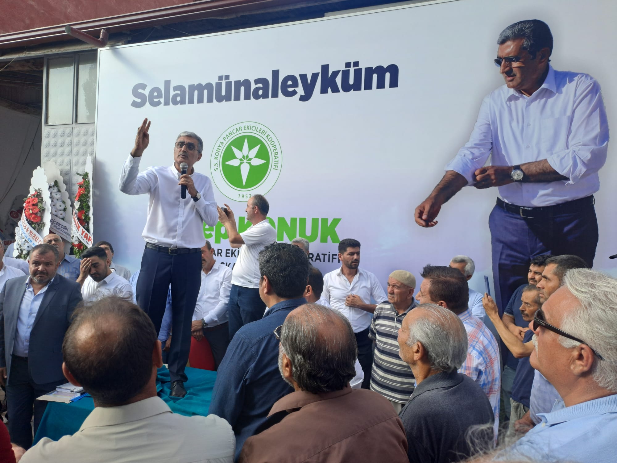 Binlerce çiftçinin katılım gerçekleştirdiği açılışta Recep Konuk, konuşmasında hem kooperatif ortaklarına hem de Konya Şeker’in 46 fabrikasında çalışan personele yönelik müjdeler verdi.